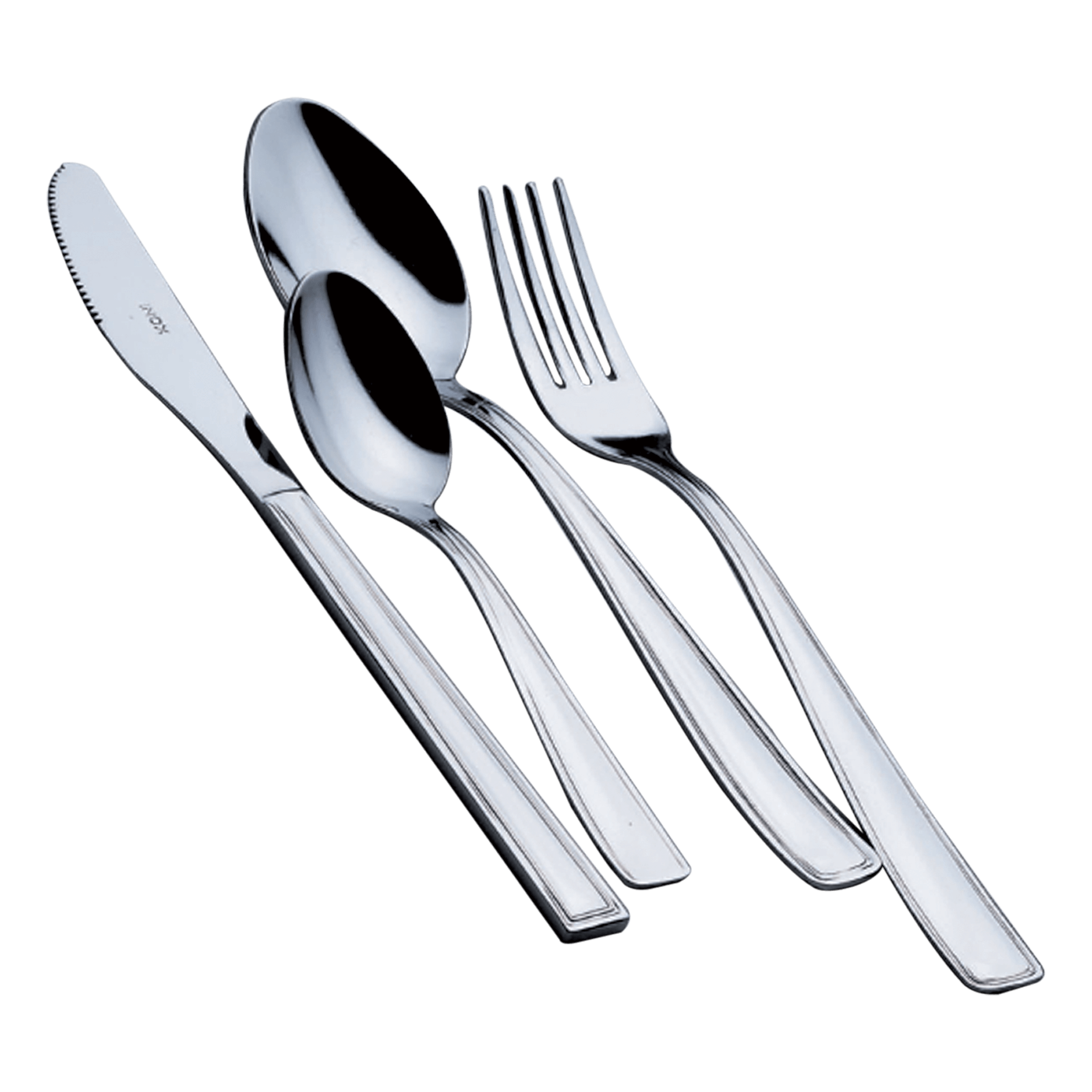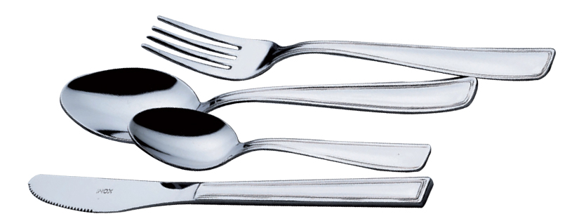 Set Capri di posate in finitura burattata e set Geometrico per forchettine antipasto.